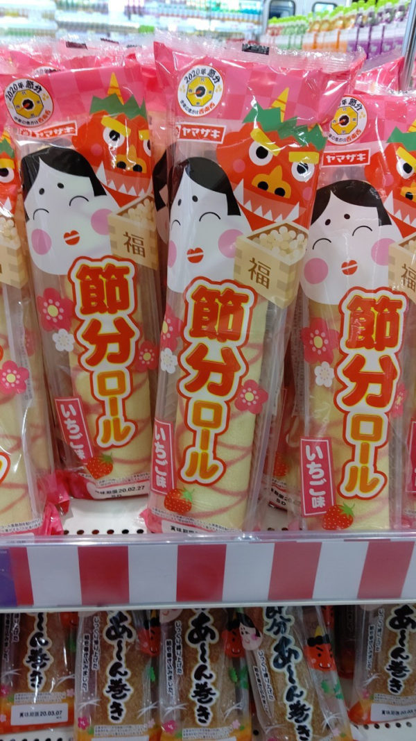 色んな、恵方巻や節分ロールとスーパーは縁起良い感じで沢山^^